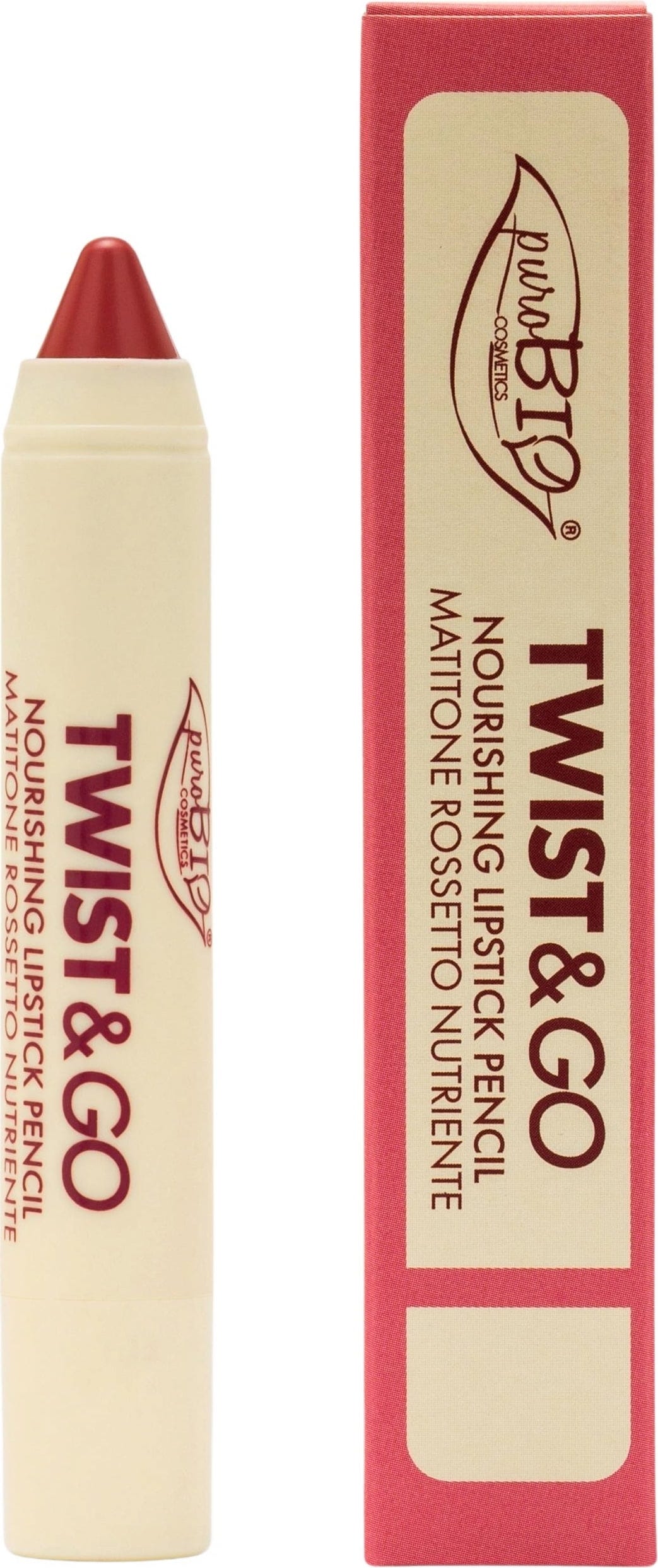English reviews written for puroBIO Cosmetics Twist & Go Nourishing Lipstick Pencil