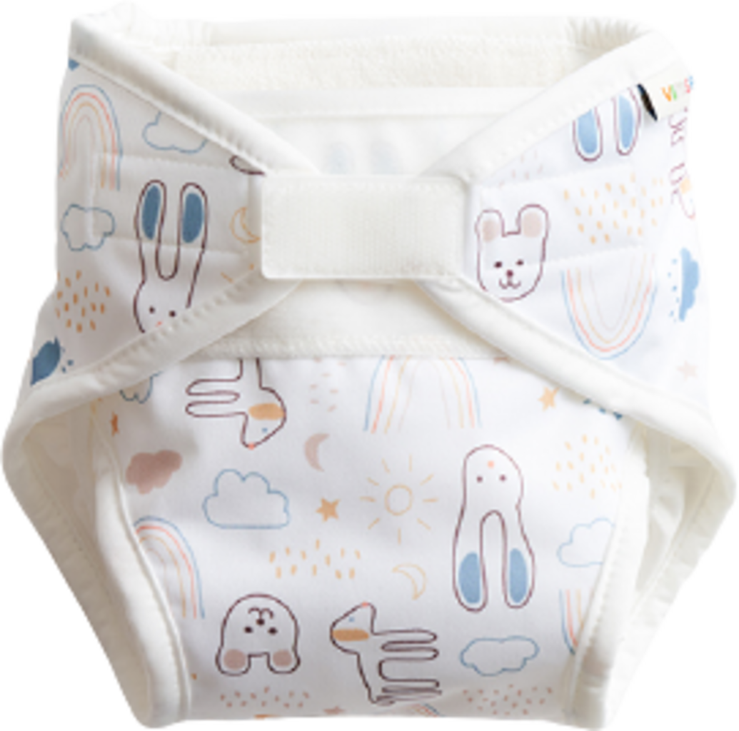 Vimse All-in-One Cloth Nappy - Newborn, White Teddy